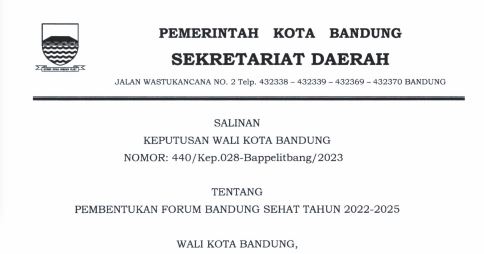 Keputusan Wali Kota Bandung Nomor 440/Kep.028-Bapelitbang/2023 tentang Pembentukan Forum Bandung Sehat Tahun 2022-2025 |